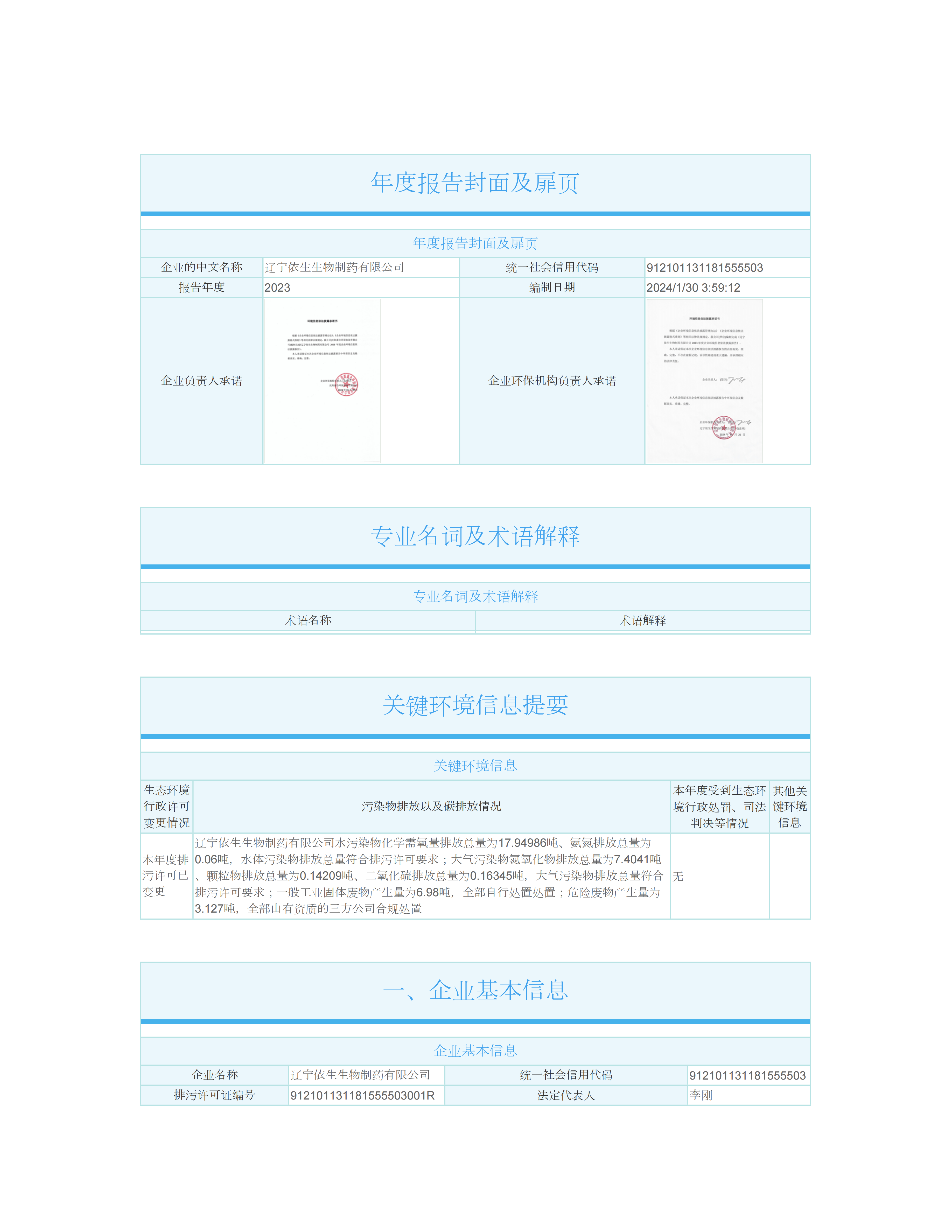 2023年度辽宁豪门国际官网生物环境信息依法披露年报